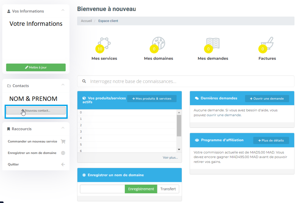 Comment ajouter un nouveau contact à mon espace client?
