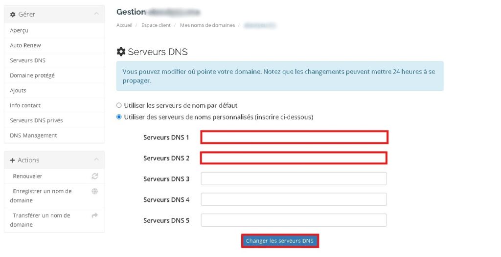 Comment changer les Serveurs DNS de mon nom de domaine?