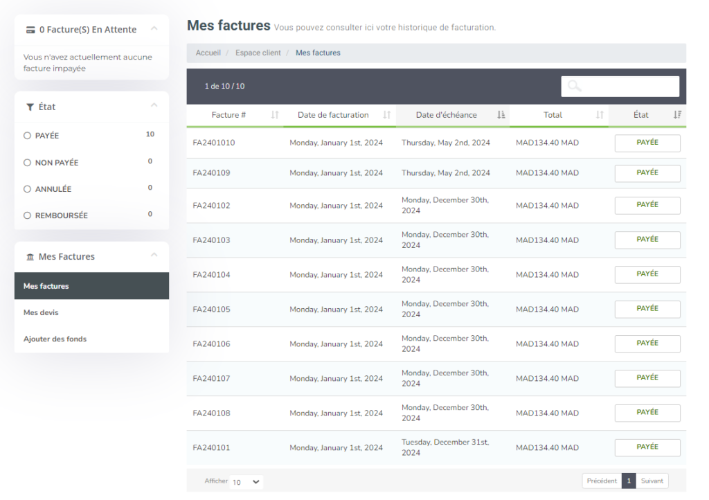 3 – Cliquez sur le numéro de la facture que vous souhaitez payer.